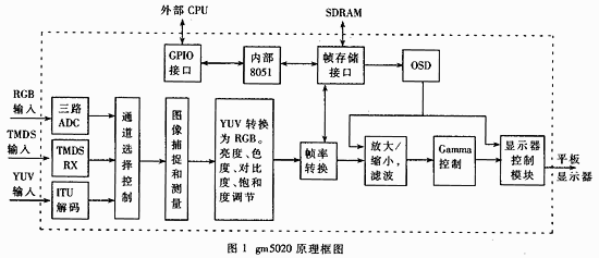 采用gm5020设计平板显示器,具有简单、灵活、费用低等特点,国内外大多数液晶显示器都采用了这种芯片。我们用gm5020设计等离子彩电,借以实现降低等离子彩电的成本。